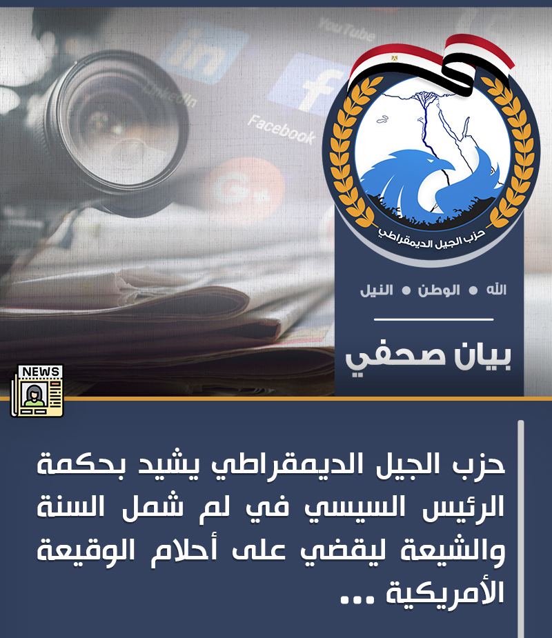 10 أكتوبر، 2024مقالات حزب الجيل الديمقراطى : يشيد بحكمة الرئيس السيسي في لم شمل السنة والشيعة ليقضي على أحلام الوقيعة الأمريكية .