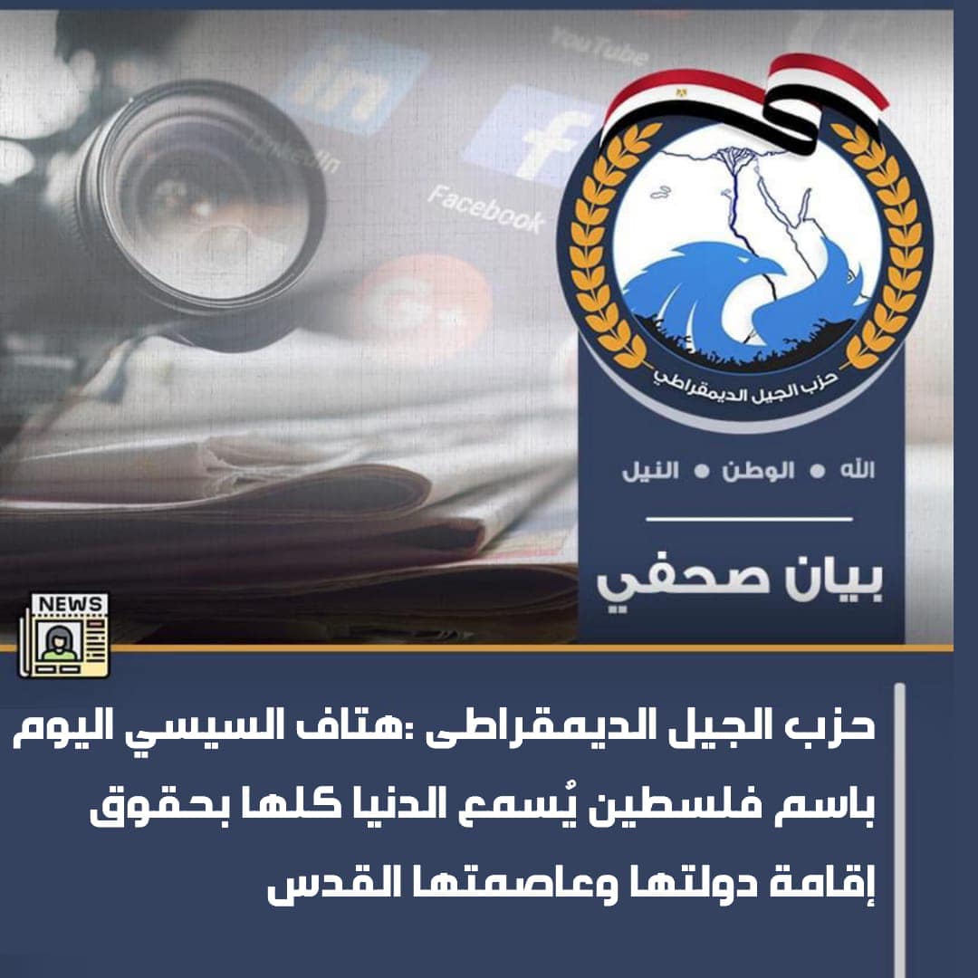 10 أكتوبر، 2024مقالات حزب الجيل الديمقراطى :هتاف السيسي اليوم باسم فلسطين يُسمع الدنيا كلها بحقوق إقامة دولتها وعاصمتها القدس .