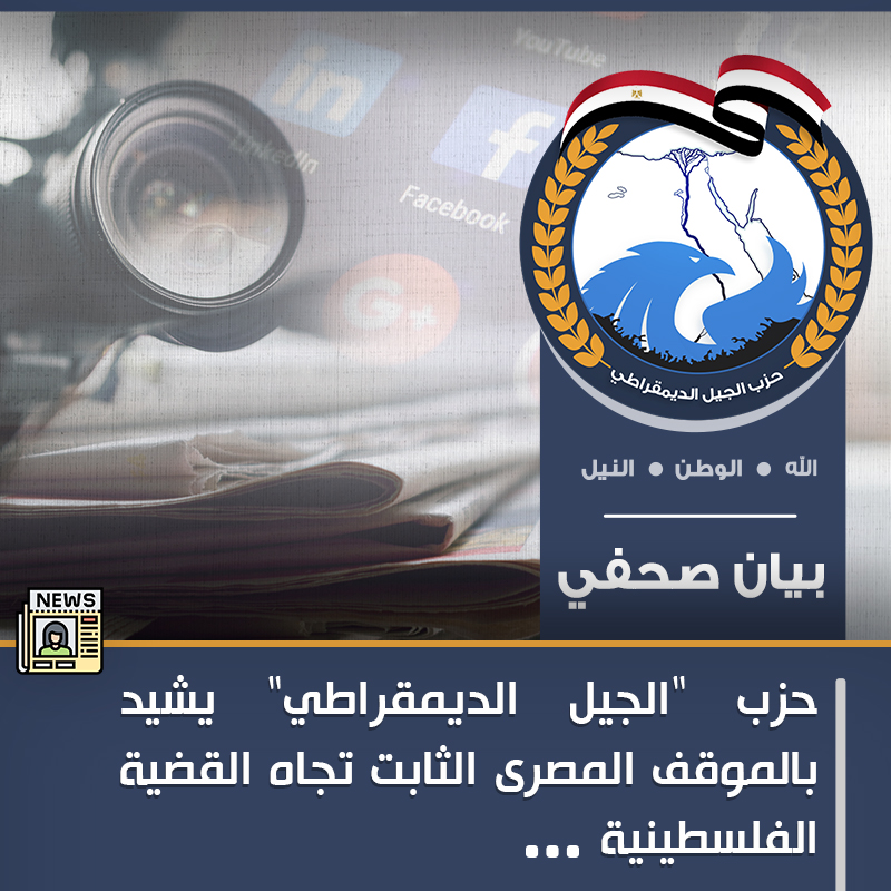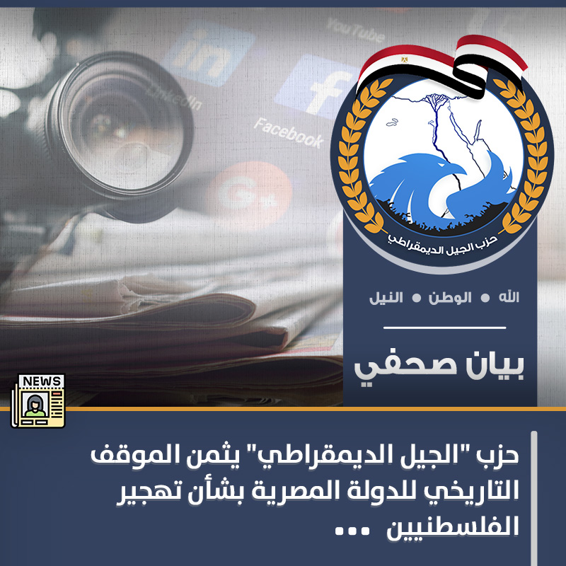 10 أكتوبر، 2024مقالات حزب الجيل الديمقراطى يُفوض الرئيس السيسى لحماية الأراضى المصرية ودعم القضية الفلسطينية.
