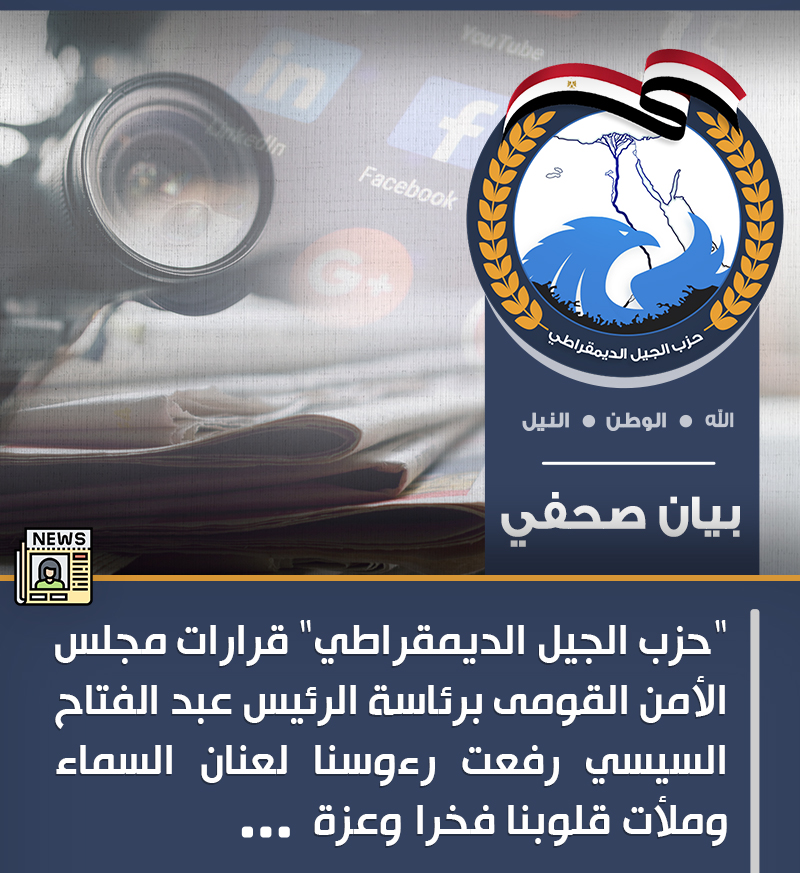 9 أكتوبر، 2024مقالات حزب الجيل : قرارات مجلس الأمن القومى برئاسة الرئيس عبد الفتاح السيسي رفعت رءوسنا لعنان السماء وملأت قلوبنا فخرا وعزة